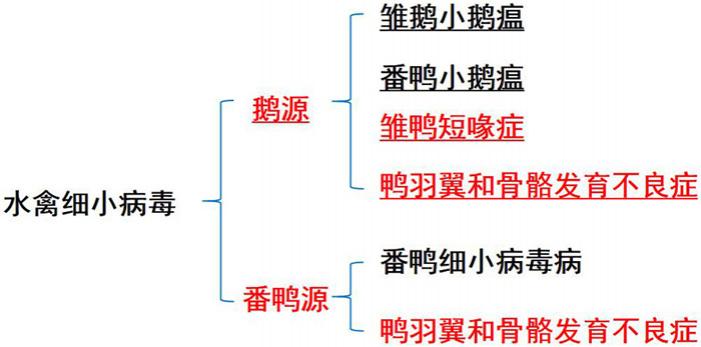①鵝源細小病毒GPV:感染鵝、番鴨和半番鴨。是最熟悉和常見的鵝/番鴨“小鵝瘟”和番鴨“三周病”病原。